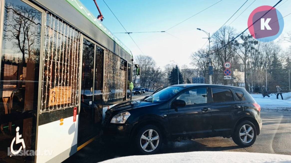 Авария произошла на улице Черняховского около пересечения с Сергеева. Сейчас там перекрыта одна полоса и не едут трамваи в сторону площади Василевского. КАСКАД 📺 Прислать новоcть