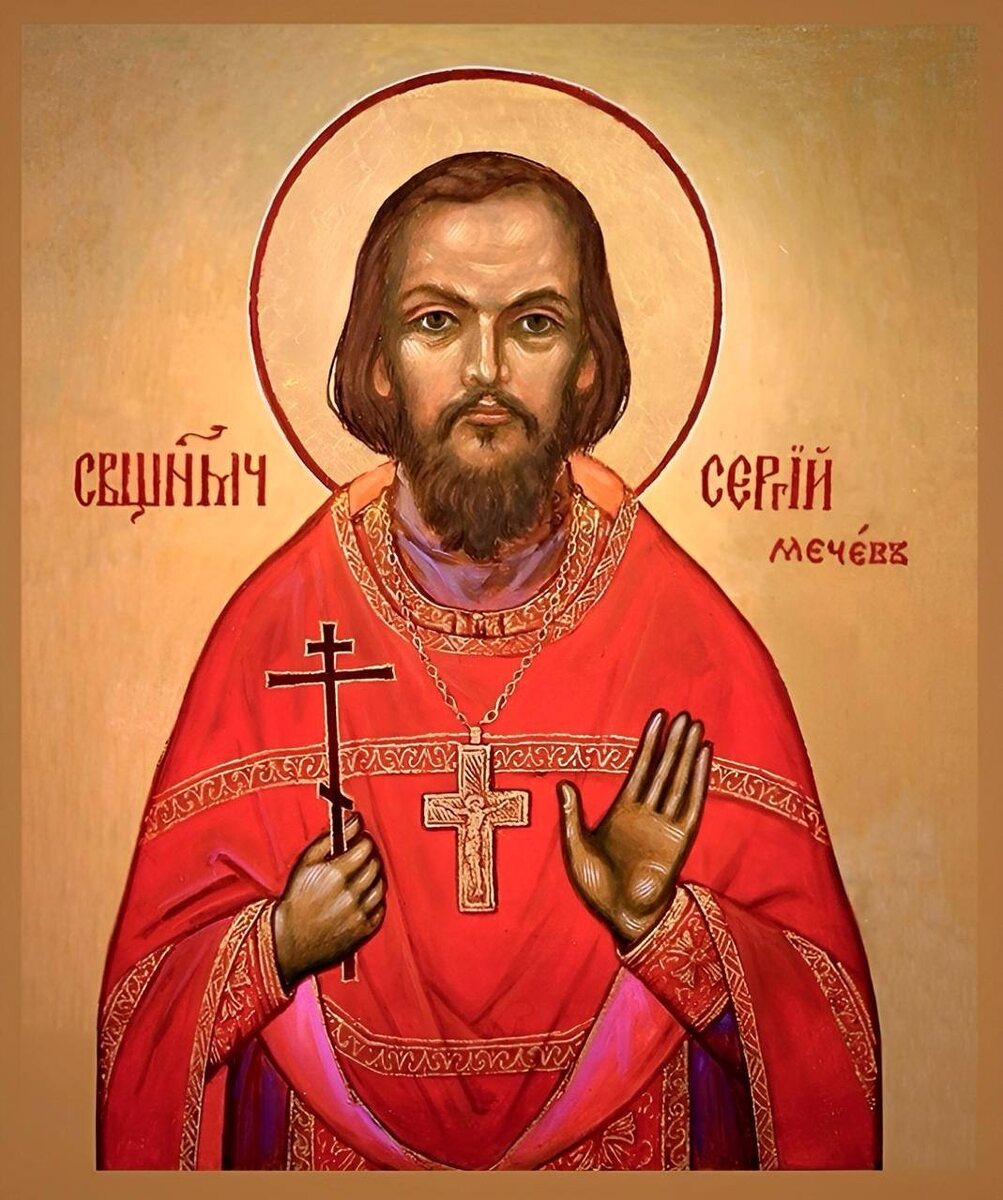 Память новомученика священника Сергия Мечёва Св. Сергий Мечёв — сын святого праведного Алексия Мечёва. После кончины отца, о.Сергий принял на своё попечение его приход, и окормлял его до самой своей мученической кончины. «Вы мой путь ко Христу, как же пойду без вас», — писал он своим духовным чадам. В 1929 году батюшку арестовали и сослали на Север, в маленький городок Вологодской области Кадников. Там в 1933 году последовал повторный арест и осуждение на 5 лет лагерей. В 1935 году его перевели в Свирские лагеря, на Лодейное Поле, после этого — под Рыбинск, на строительство плотины. В 1937 году отец Сергий освободился из лагеря. Он поселился в окрестностях города Калинина и работал врачом в одной из поликлиник. 7 июля 1941 года батюшку арестовали и поместили в Ярославскую тюрьму. После 4-х месяцев допросов и пыток, на которых он вёл себя мужественно, стремясь, чтобы никто из общины не пострадал, в ночь на 6 января 1942 года он был расстрелян в тюрьме Ярославского НКВД в возрасте