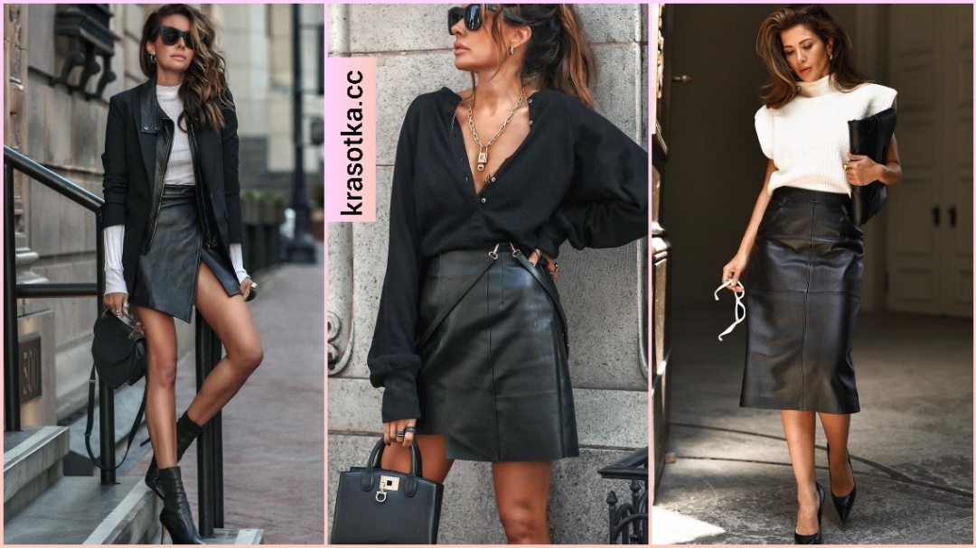 Эффектные луки с кожаной юбкой