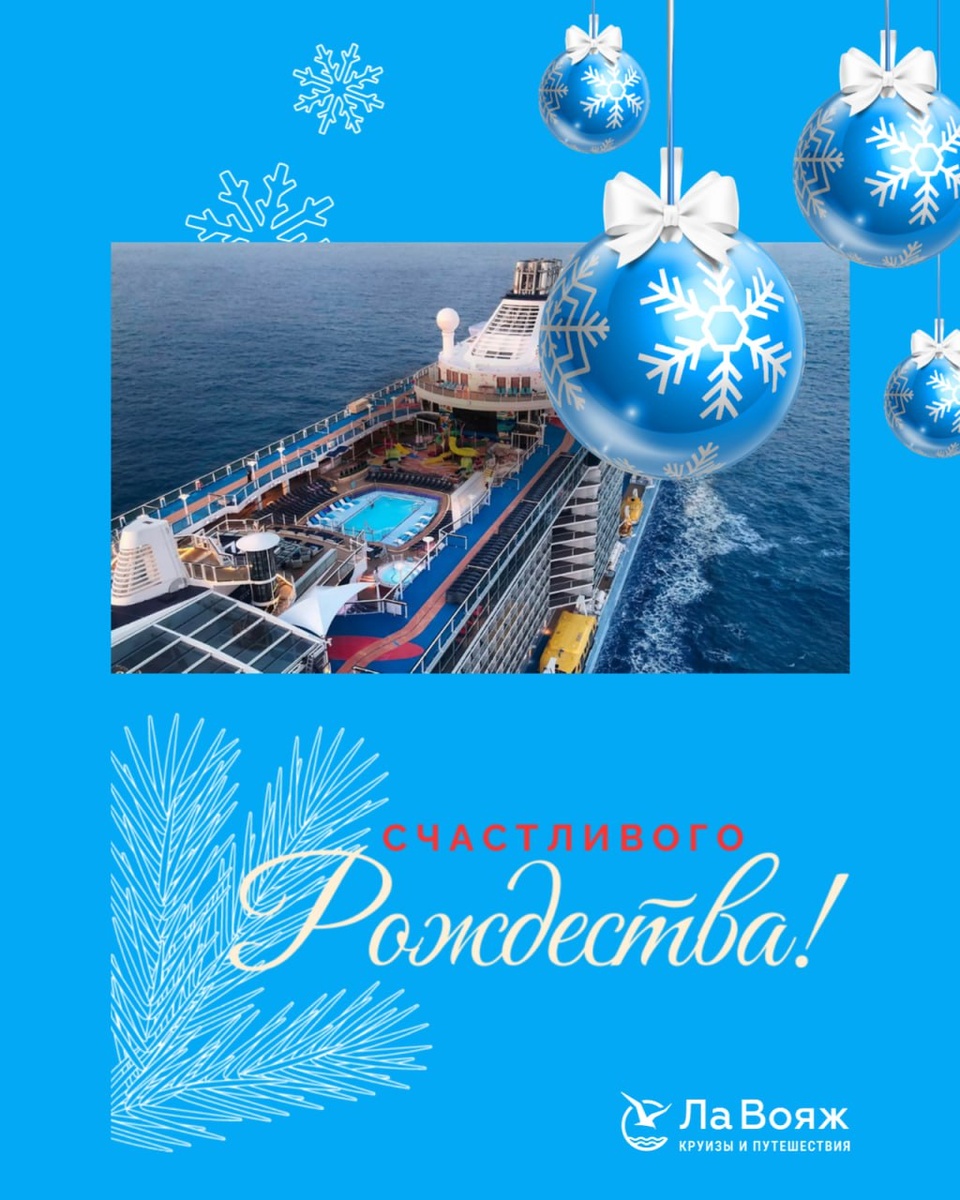 Дорогие друзья, подписчики и клиенты «ЛаВояж-круизы&путешествия»! Команда «ЛаВояж-круизы&путешествия» сердечно поздравляет вас с Рождеством! Пусть этот светлый праздник принесёт в ваш дом тепло, спокойствие и радость! Спасибо, что выбираете нас для организации вашего отдыха. Мы всегда рады помочь вам превращать мечты об отдыхе, море и новых путешествиях в реальность — от уютных речных круизов по России до ярких морских вояжей по миру. С наилучшими пожеланиями, «ЛаВояж-круизы&путешествия»