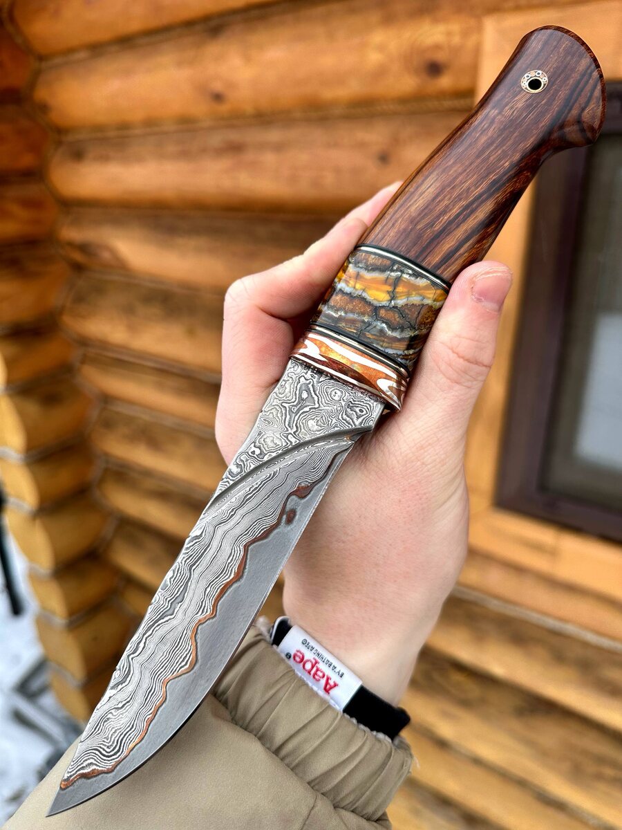 ! 🗡 Разделочный нож из сложного ламинированного дамаска — настоящее произведение кузнечного искусства. ✨ Впервые две технологии ковки в одном клинке: крученый и дольный дамаск с добавлением никеля и меди. Клинок с обработкой под камень и фигурным долом — впечатляет не только в работе, но и внешним видом. Рукоять — настоящее украшение: - железное дерево (Iron Wood) — славится долговечностью и красотой; - стабилизированный зуб мамонта — редкость даже для коллекционеров; - вставка из мокуме-гане — уникальный узор, каждый раз неповторимый. 🌿 В комплекте — формованные кожаные ножны из кожи растительного дубления с ручным тиснением. 🔥 Специальная цена по Чёрной пятнице: 89 000 руб. Такого ножа не будет больше никогда — он один! Отличный выбор для коллекционера, охотника, ценителя ручной работы и роскоши. 📩 Писать для заказа: @Nazarklinokbot или по тел/Whatsapp/Viber: +7 910 134-38-31 #эксклюзив #дамаск #уникальныйнож #кузницаназарова #чёрнаяпятница #ручнаяработа