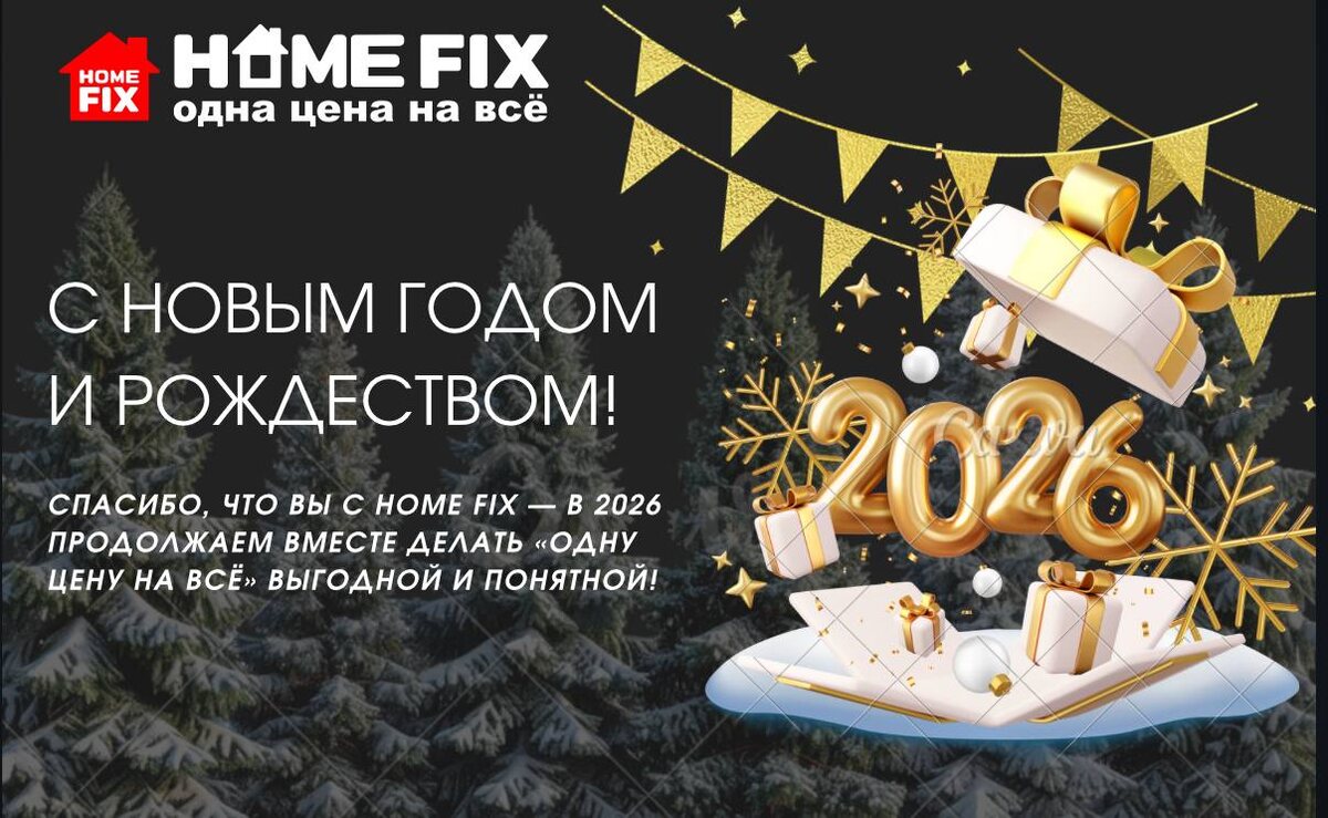 ! 🎄✨ Команда франшизы HOME FIX поздравляет вас с Новым годом и Рождеством! Спасибо за вашу поддержку и за то, что вместе с нами вы делаете формат «одна цена на всё» понятным и доступным для покупателей по всей стране. 🛍️🤝 Пусть 2026 год принесёт стабильный рост продаж, новые точки и ещё больше довольных клиентов. Желаем вам здоровья, удачных запусков и вдохновения для смелых планов. С нетерпением ждём продолжения успешного партнёрства! 🎉🔖 С уважением, команда HOME FIX