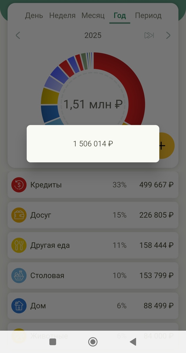 На самом деле, я потратила больше. Просто в своём учёте расходов я не отражаю ту часть ипотечного платежа, который идёт на погашение основного долга, а значит, большая часть досрочных платежей уходит мимо этой статистики. Возможно, в 2026 я поменяю систему учёта, но в 2025 она была именно такой.