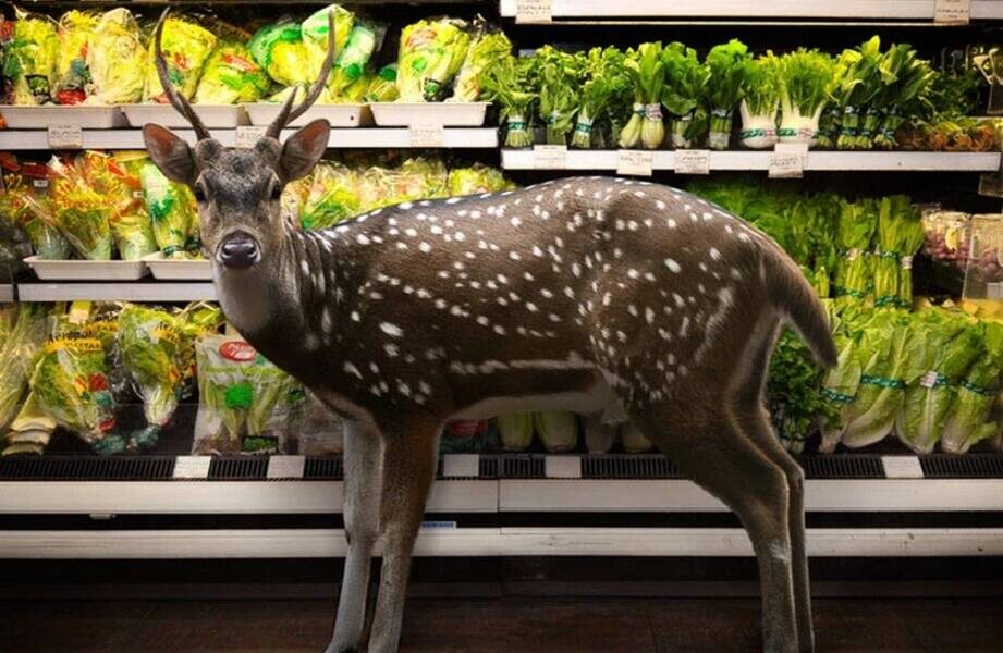 Для чего индонезийский художник отправил зверей в продуктовые магазины. Территория человека всегда казалась четко очерченной ― города, дороги, торговые центры существуют как пространство цивилизации, куда дикая природа не имеет доступа. Мы привыкли видеть животных либо в естественной среде, либо за решетками зоопарков, но никак не среди полок с продуктами. Индонезийский фотограф Аган Харахап решил разрушить эту привычную картину мира. В серии работ Garden Fresh художник поместил диких зверей туда, где их присутствие кажется абсурдным, ― в супермаркеты и торговые павильоны. Олени бродят между стеллажами, тигры останавливаются у холодильников, а кролики прячутся среди салатов и другой зелени. Не переживайте: все изображения созданы с помощью дизайнерских программ, так что ни одно животное не испытывало даже малейшего дискомфорта. Так в чем же идея этого странного на первый взгляд проекта? Современная цивилизация постоянно расширяет территорию влияния, вытесняя дикую природу на периферию,
