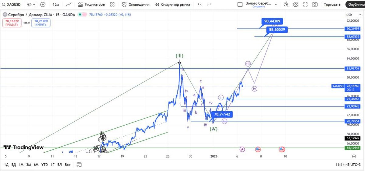 Для подтверждения восходящего сценария цена должна оставаться выше уровня 77.89.