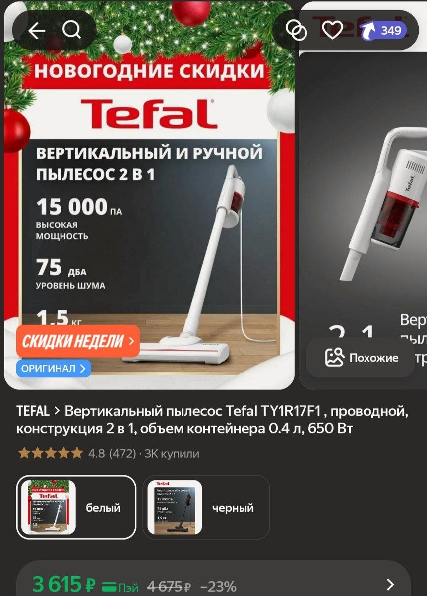 π₯ΠΠ΅ΡΡΠΈΠΊΠ°Π»ΡΠ½ΡΠΉ ΠΏΡΠ»Π΅ΡΠΎΡ Tefal TY1R17F1 , ΠΏΡΠΎΠ²ΠΎΠ΄Π½ΠΎΠΉ, ΠΊΠΎΠ½ΡΡΡΡΠΊΡΠΈΡ 2 Π² 1, ΠΎΠ±ΡΠ΅ΠΌ ΠΊΠΎΠ½ΡΠ΅ΠΉΠ½Π΅ΡΠ° 0.4 Π», 650 ΠΡ Π·Π° 3615β½