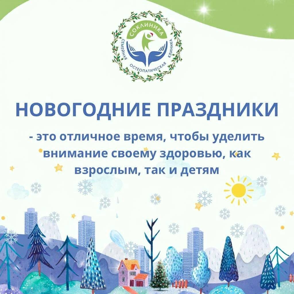 🎄Новогодние праздники – это не только время для посещения театров, музеев, катков, прогулок, тёплого общения с близкими и родными. Но это ещё и хороший момент, чтобы уделить внимание своему здоровью и подготовить организм к возвращению в рабочий и учебный ритм. 🫶🏻С точки зрения клинической системной Остеопатии мы работаем не только с местом в теле, где есть боль, но и определяем систему нарушений, в которой и развился болевой синдром или иная симптоматика. Такой подход позволяет быстро и значимо повлиять на улучшение самочувствия и устранить боль или иную симптоматику, а ещё во многом создать профилактический запас здоровья. 💚Наша Семейная остеопатическая клиника открыта и готова помочь взрослым и детям начать новый год в хорошем состоянии Здоровья: +7 (495) 532-63-26 +7 (925) 182-52-91 📍 ул. Кашенкин Луг, д. 6, корп. 2 (две станции метро от Садового кольца и 10 минут пешком) или D3 Останкино. 🎁Для всех наших подписчиков в ВК, ТГ, Дзен продолжает действовать СПЕЦИАЛЬНОЕ ПРЕДЛОЖЕН