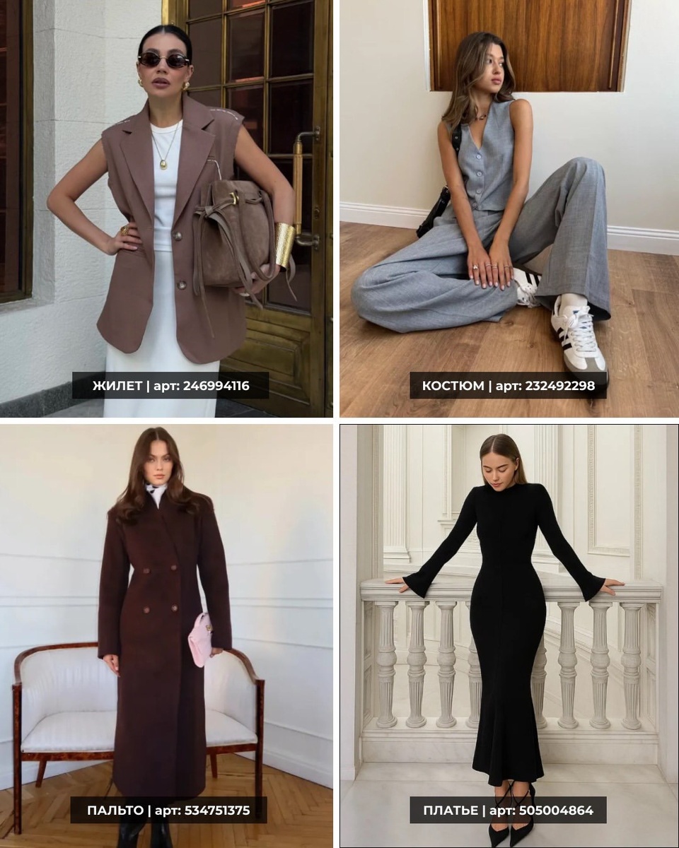 В ваших подборках чувствуется выверенная идея: чистые линии, благородная палитра, акцент на посадке и фактурах. Это тот самый стиль, который не кричит, а уверенно заявляет о вкусе — через плечо жакета, длину пальто, точный силуэт платья и правильный оттенок молочного или шоколадного. Здесь можно собрать гардероб, где вещи работают как конструктор: меняете обувь и сумку — и один комплект становится то офисным, то вечерним, то расслабленно-городским.