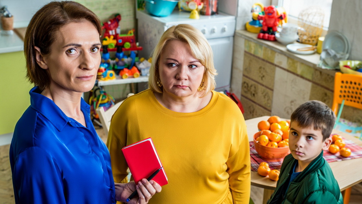 Старший, Миша, девять лет, серьёзный, как бухгалтер, смотрит на Веру оценивающе. Средняя, Соня, пять лет, сразу снимает обувь и бежит в комнату, будто здесь её квартира и она просто вернулась с прогулки. Младший, Тёма, два года, держится за мамины колени и одновременно пытается вырвать у неё телефон.