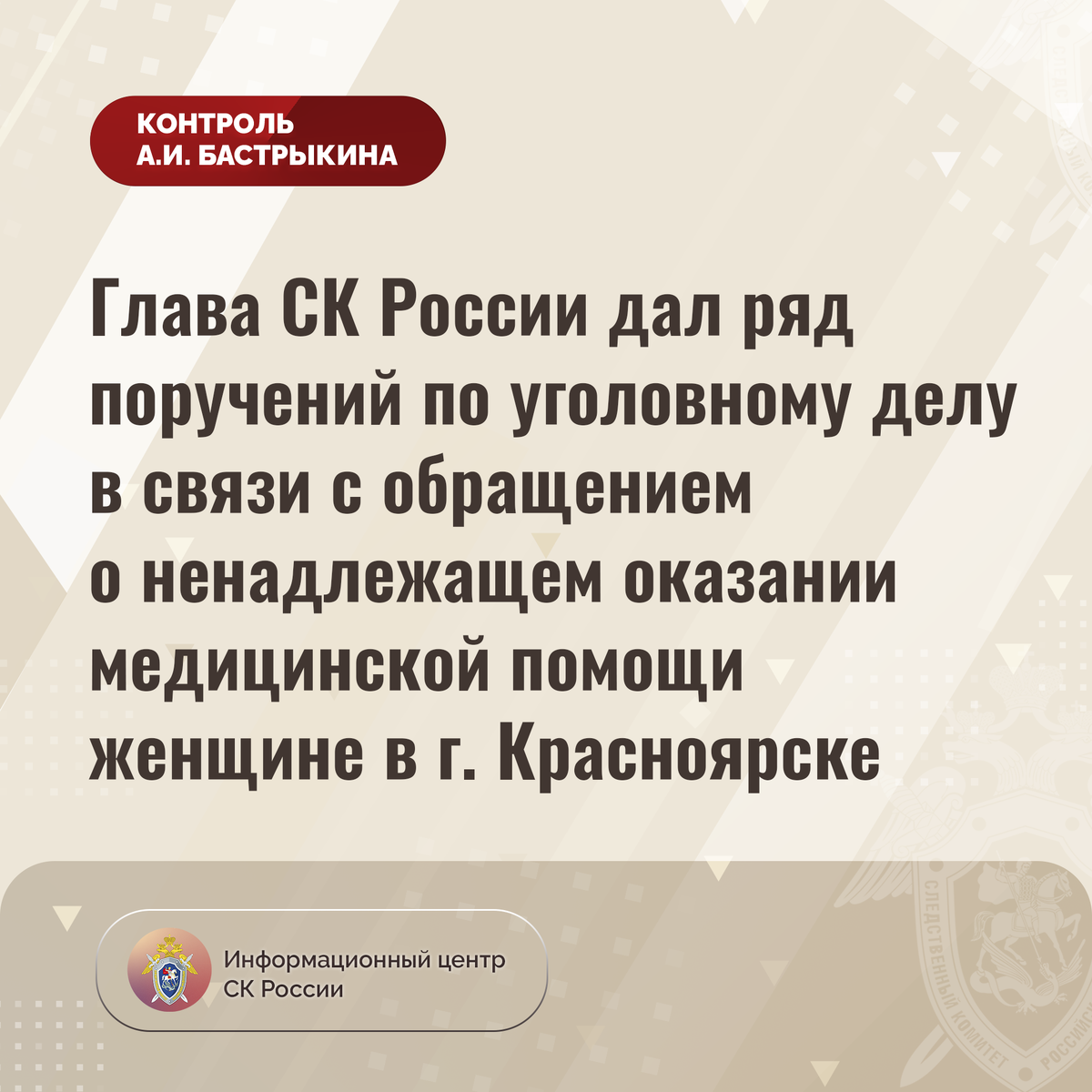 Глава СК России дал ряд поручений по уголовному делу в связи с обращением о ненадлежащем оказании медицинской помощи женщине в г. Красноярск
