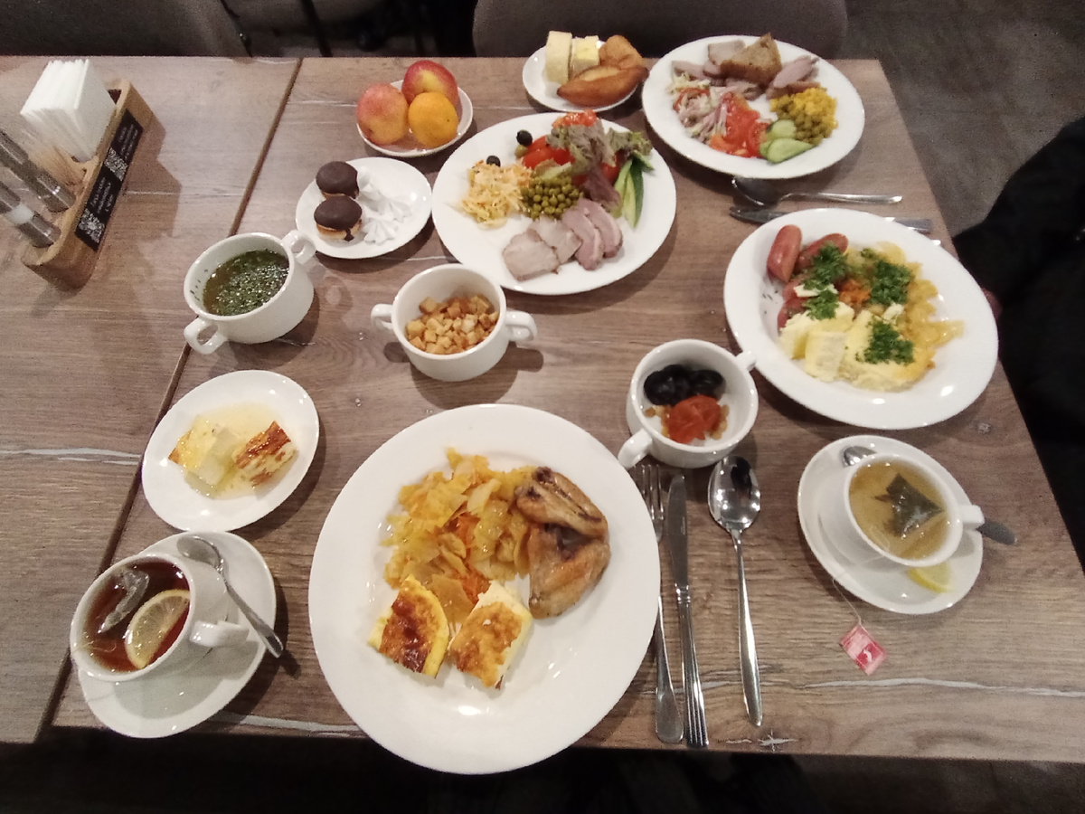 Завтрак довольно плотный и разнообразный. На любой вкус. Кто-то просто кашу овсяную ложкой ковыряет. А кто-то также как и мы - очень обильно У нас день довольно насыщенный, так что попробовали почти всё.