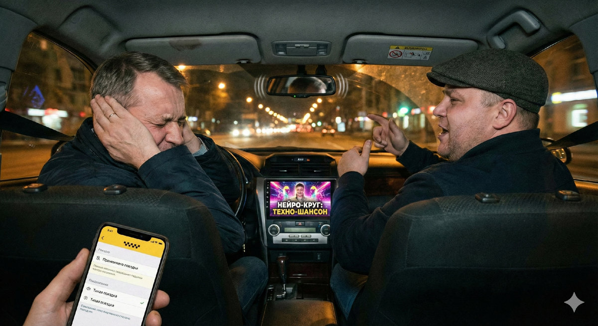 Машина прибыла, граждане, в срок. Иностранный агрегат желтого цвета подкатил к парадной с удивительной точностью. Я, признаться, обрадовался. Думаю, сейчас с комфортом осуществлю перемещение туловища из точки А в точку Б. Открыл дверь. И тут же понял, что перемещение будет не простым, а культурно-массовым. Из салона на меня обрушился звук. Плотный такой, осязаемый. Не то чтобы музыка, а скорее ритмичное уханье. Будто кто-то огромный и невидимый забивает сваи в мою нервную систему. А поверх этого уханья - душевный голос. Страдает о тяжелой доле. Я, конечно, человек современный. В приложении галочку «Тихая поездка» поставил. И даже, кажется, за это доплатил. Но техника, видимо, дала сбой. Или водитель галочку не заметил по причине творческого экстаза. Сел я на заднее сиденье. Пристегнулся. Чувствую - вибрирую. Зубы стучат в такт ударным. - Уважаемый, - говорю я в пространство передних сидений. - А нельзя ли убавить этот акустический напор? Водитель, мужчина солидный, в кепке, повернул го
