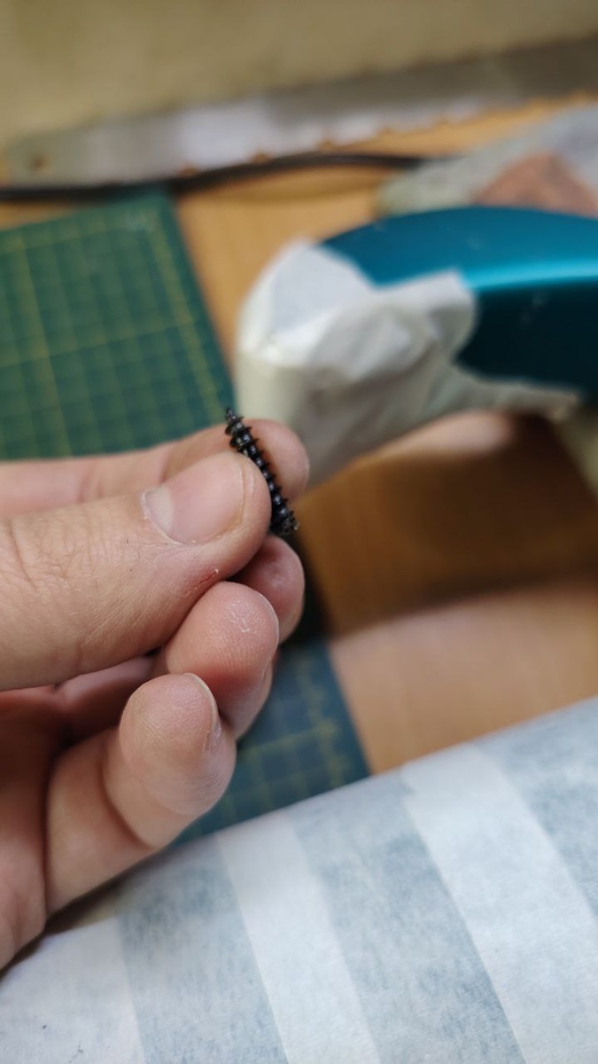 😅 Перед новым годом знакомый басист обратился с просьбой срочно откалибровать порожки и починить один из стреплоков. Если с калибровкой все понятно, то со стреплоком там немного сложнее. Во время выступления саморез на который прикручен стреплок, отломился, и гитара чуть не шандарахнулась об пол 😱 Из-за того, что гриф клееный, его никак не снять, а "рог" корпуса сильно изогнут, просто высверлить сломаный саморез не получится. Пришлось шевелить мозгами 😅 В итоге немного углубившись в корпус и сделав прорезь на сломаном саморезе для плоской отвертки, получилось его выкрутить. Аккуратно облагородил место установки стреплока, нашел подходящий по диаметру и длине саморез, установил все на место 😎