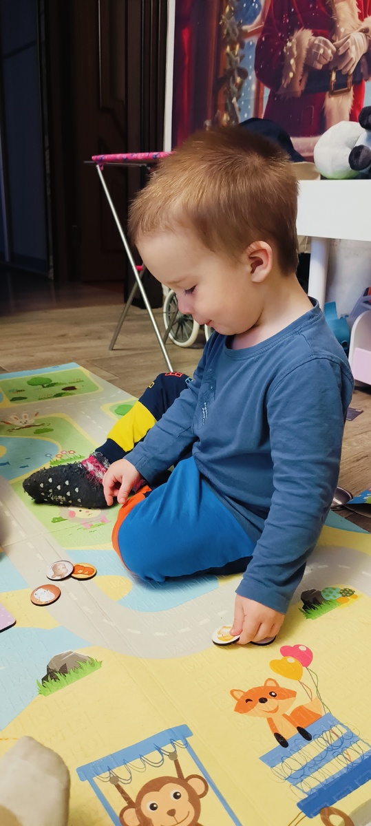 Потом стали доставать: кто что ест, кто где живёт, чей детёныш. И понеслось: "Фатить игать". У поросенка детёныш оказался медвежонок. Ну и все в этом духе. Лимит усидчивости и внимания исчерпан. Наступил безлимит стояния на ушах.