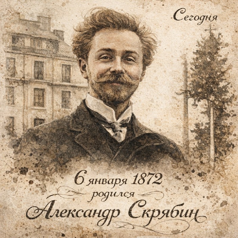 6 января — особая дата в истории русской музыки. В этот день в 1872 году родился Александр Николаевич Скрябин (1872–1915) — композитор, пианист и мыслитель, чьё творчество навсегда изменило представление о возможностях музыкального искусства. Александр Скрябин появился на свет в Москве в дворянской семье. Его мать, талантливая пианистка Любовь Петровна, умерла, когда мальчику не было и года. Воспитанием будущего композитора занимались тётки — тоже профессиональные пианистки. Уже в раннем детстве проявились его незаурядные музыкальные способности: в пять лет он свободно играл на фортепиано и импровизировал. Образование Скрябин получил в Московской консерватории, где учился у выдающихся педагогов — С. И. Танеева (теория) и В. И. Сафонова (фортепиано). Несмотря на блестящий пианистический дар, из‑за перенапряжения он повредил правую руку, что стало серьёзным испытанием, но подтолкнуло к усиленной работе над композицией. Ранние сочинения Скрябина (прелюдии, этюды, сонаты) выдержаны в трад