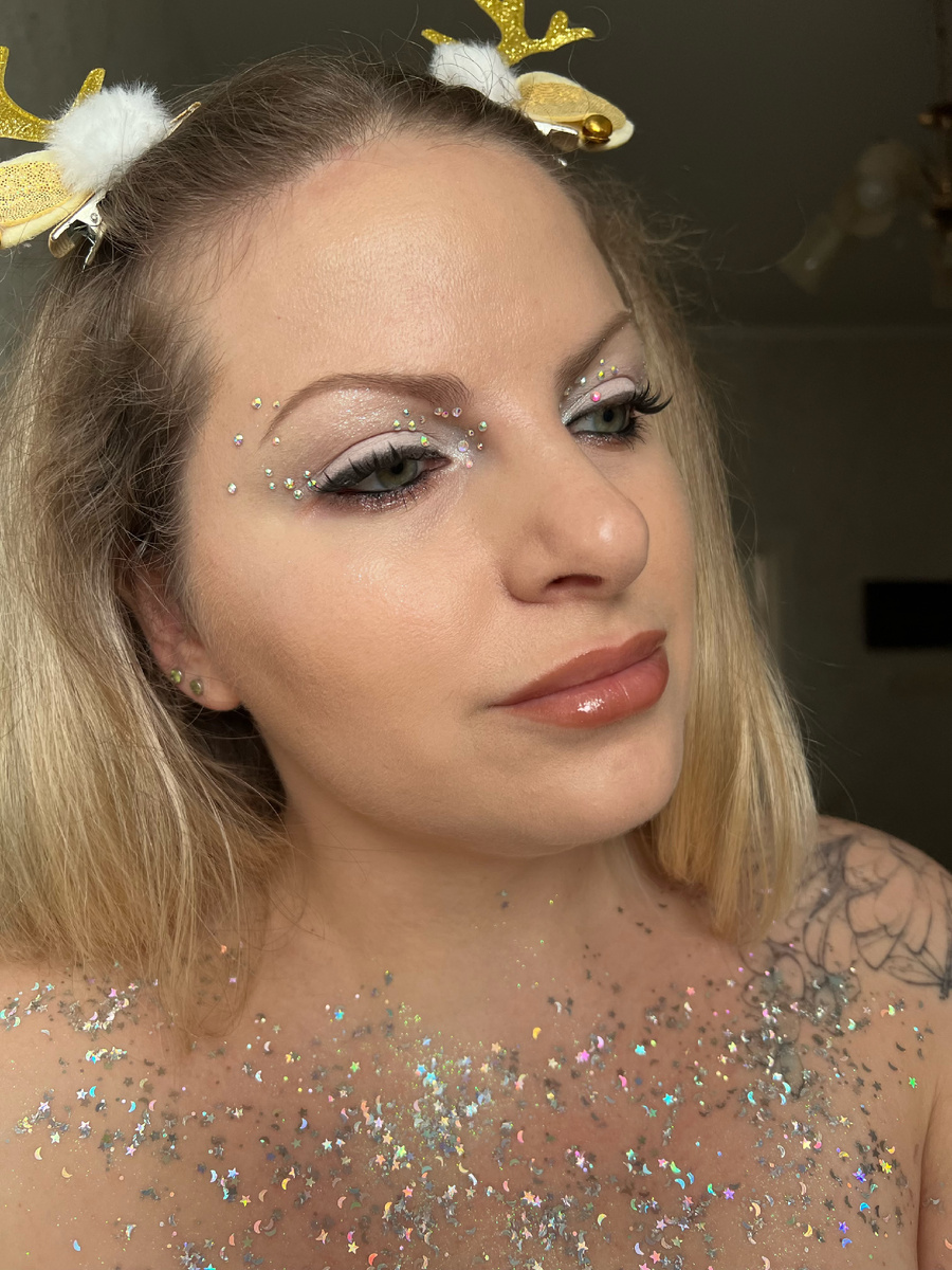 Для меня это был необычный опыт. Так как весь акцент на глаза делается за счет страз и ресниц, а вот работы с формой и тушевкой здесь практически нет.