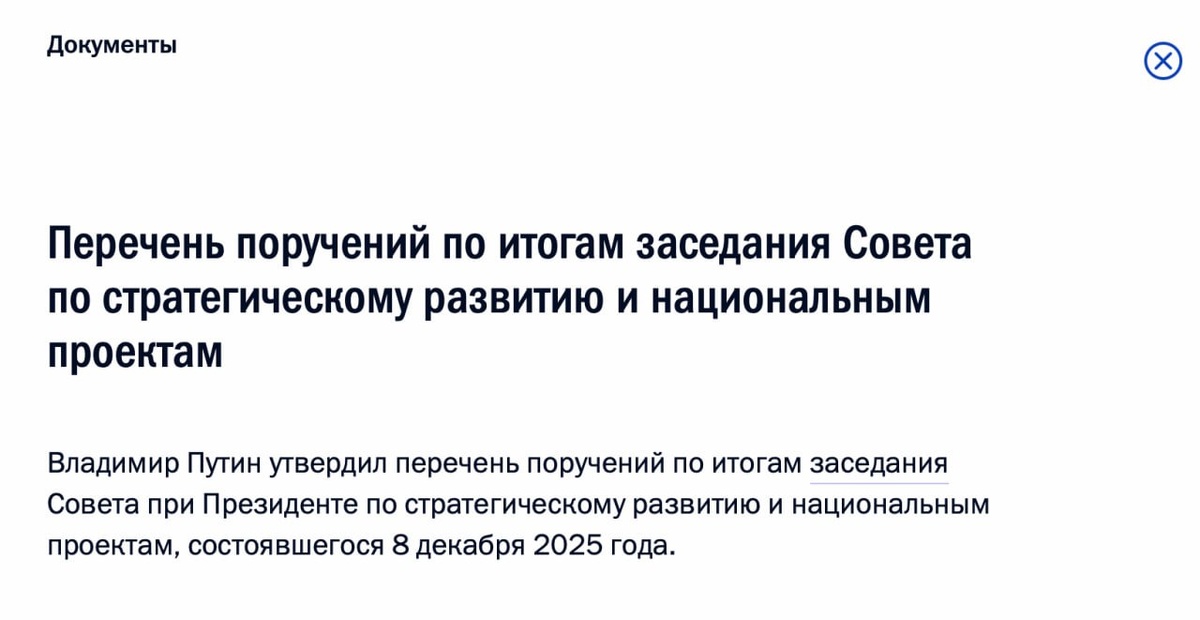 Изучили перечень поручений Путина по итогам заседания Совета по стратегическому развитию и нацпроектам (оно состоялось 8 декабря 2025 года