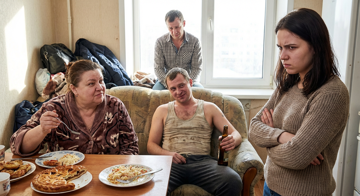 Я вошла на кухню и замерла. За моим столом, на моем любимом стуле сидела грузная женщина в цветастом халате – тетя Галя. Рядом, наворачивая картошку прямо со сковороды, сидел Виталик – тот самый сын, про которого я вчера вспоминала. Андрей суетился вокруг них, подливая чай и нарезая хлеб.