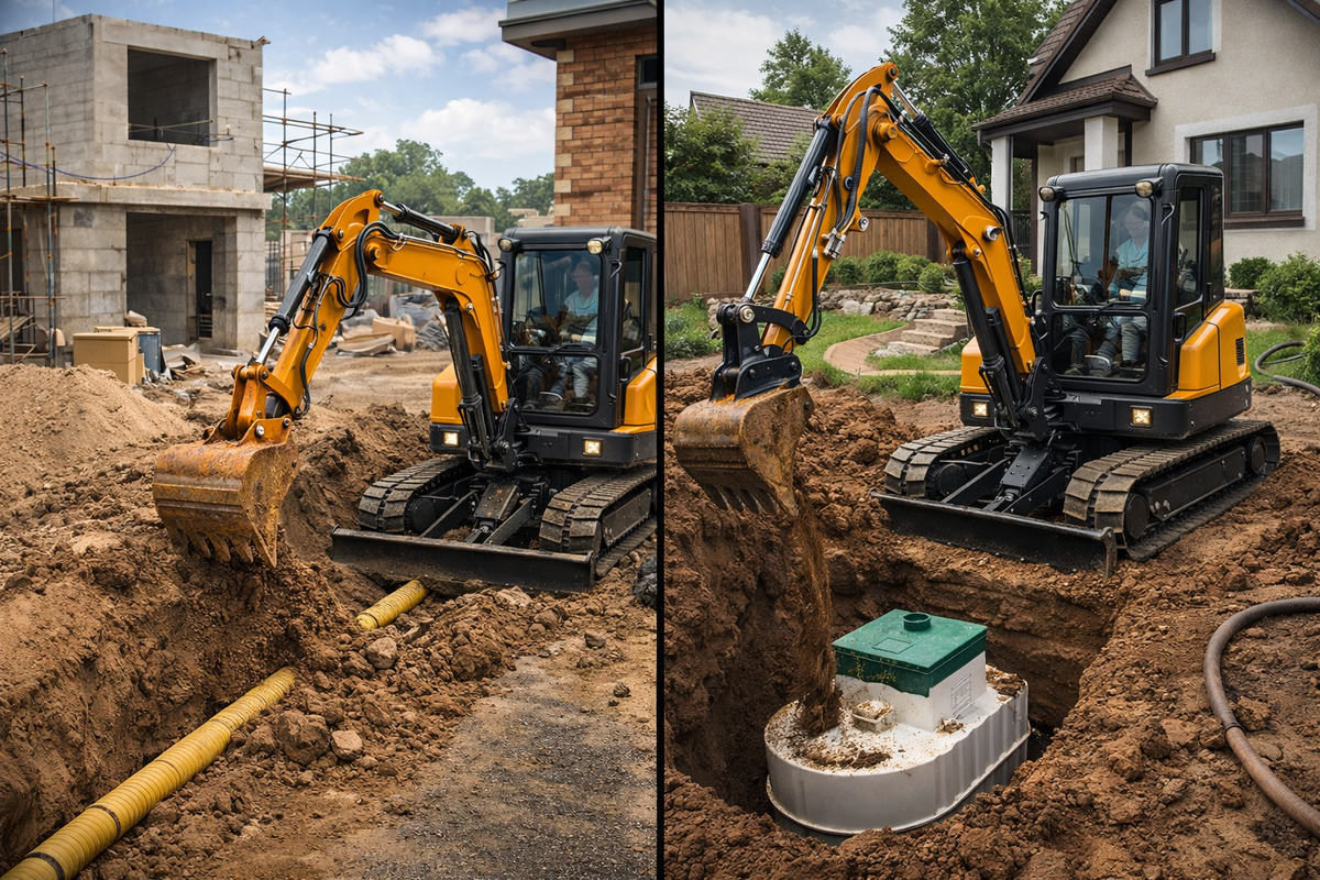Когда выбирают мини-экскаватор, легко уйти в крайности: взять полегче ради компактности или взять потяжелее “на всякий случай”. На практике класс 4 тонны чаще всего становится тем самым “универсальным солдатом”: достаточно мощный для реальной стройки и при этом удобный для работы на участках, во дворах и в коттеджных посёлках. Четырёхтонник уверенно справляется с тем, что встречается на объектах каждый день: траншеи под сети и коммуникации, дренаж и водоотвод, подготовка основания, работы по фундаментам, обратная засыпка и финишная планировка. Это класс, который не ограничивает подрядчика “только мелкими работами”, но и не требует пространства, как тяжёлая техника. Реальные объекты — это не поле. Это ворота, заборы, узкие проезды между домами, работа вдоль участка и рядом с благоустройством. В таких условиях важны манёвренность, аккуратность и возможность работать “в коридоре” без постоянных перестановок. И здесь 4-тонный мини-экскаватор обычно даёт хороший баланс: он чувствует себя у
