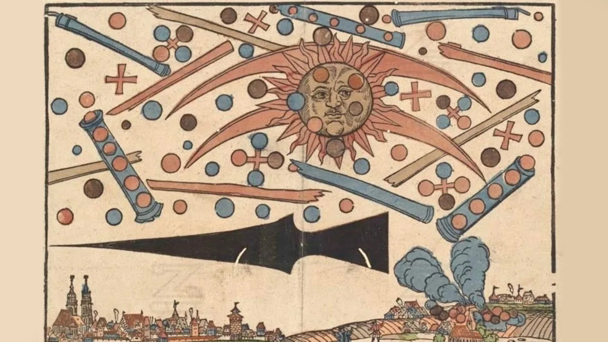История об этом небесном событии в Нюрнберге в 1561 году — это одно из самых известных и загадочных происшествий в истории, которое иногда называют "Нюрнбергским небесным сражением". Действительно, в источниках того времени можно найти описания странных явлений в небе, но вопросы о том, что именно это было, до сих пор остаются без ответа. Давай разберемся по порядку. В апреле 1561 года жители Нюрнберга, города в Священной Римской империи, стали свидетелями явлений в небе, которые привлекли внимание не только местных жителей, но и историков. Свидетели утверждали, что над городом в небе произошло некое сражение — сотни странных объектов, таких как сферы, цилиндры и другие фигуры, двигались хаотично. Некоторые из этих объектов якобы сталкивались друг с другом и исчезали в огромных вспышках света. Через несколько минут или часов после этого сражения появился огромный черный треугольный объект,