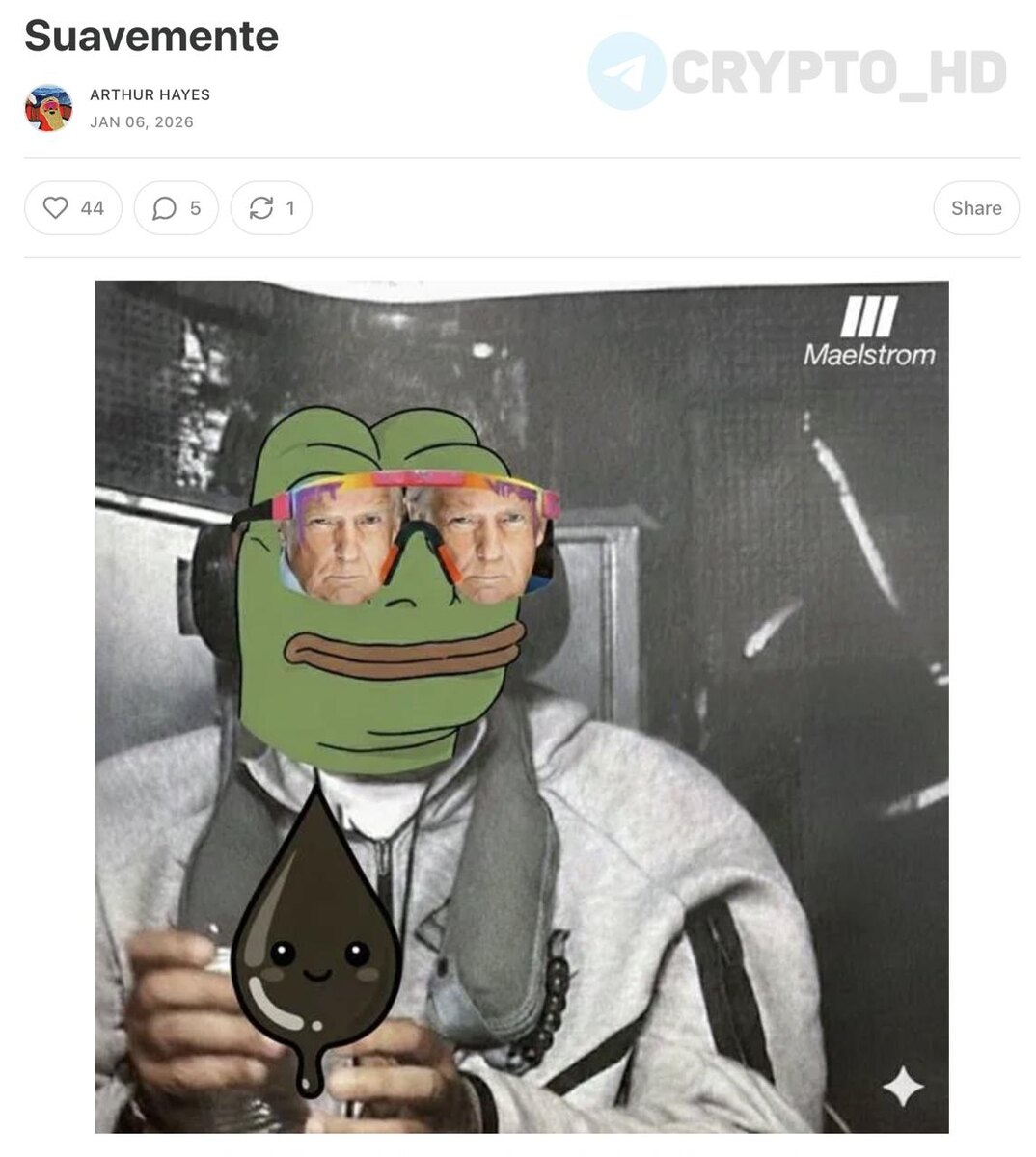 В новом эссе «Suavemente» Артур Хейс объясняет, зачем США «колонизировали» Венесуэлу, почему цена бензина важнее любой идеологии и как это напрямую ведет к росту BTC и крипты. Основные тезисы: ➤ Все политики думают только о переизбрании. Идеология вторична, экономика первична. ➤ Для среднего американского избирателя важны всего две вещи: экономика и инфляция. ➤ Ключевая инфляция – еда и энергия. Главный индикатор для США – цена бензина. ➤ Дорогое топливо = провал на выборах. Дешевое топливо = политическое выживание. ➤ Венесуэла нужна США не из-за политики, а из-за нефти. Цель проста: сбить цены на бензин и энергию. ➤ Дональд Трамп ориентируется на рынки: акции, доходности гос. облигаций и нефть. Пока акции растут, а нефть дешевая, печатный станок НЕ остановится. ➤ Биткоин не зависит от цены энергии напрямую. Он выигрывает от расширения ликвидности. ➤ Цена нефти важна только как ограничитель печати денег. Пока нефть под контролем, деньги будут печатать. ➤ Базовый сценарий – не