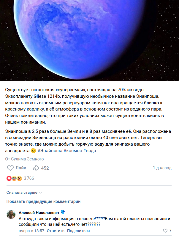 То, что знак вопроса в вопросительном предложении порой не ставят - тема отдельная. Адрес странички, с которой взяты эти скриншоты, я не сохранил, а найти снова её не смог. Говорят, что в интернете ничего не пропадает - может быть, и так, но найти можно далеко не всё. Впрочем, это не единственный пример, подобная реакция на научно-популярные тексты вполне типична.