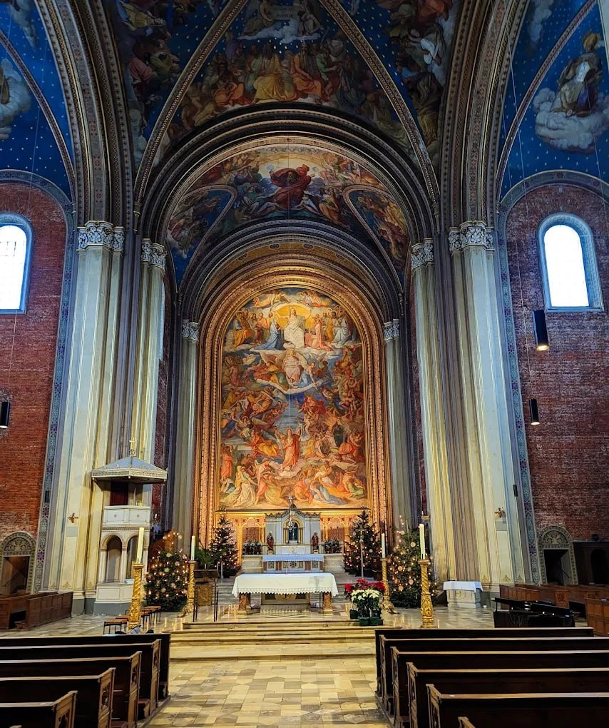 ⚫️ Король Людвиг I повелел построить её как приходскую и университетскую церковь, что и было сделано с 1829 по 1844 год, несмотря на войны, эпидемии и кризисы. ⚫️ Внутри находится фреска «Страшный суд» Петера Корнелиуса — вторая по величине в мире. А уникальную цветную мозаику на крыше, к сожалению, могут рассмотреть только птицы. #ГородаГермании 🚩 Телеканал "Квадро ТВ"