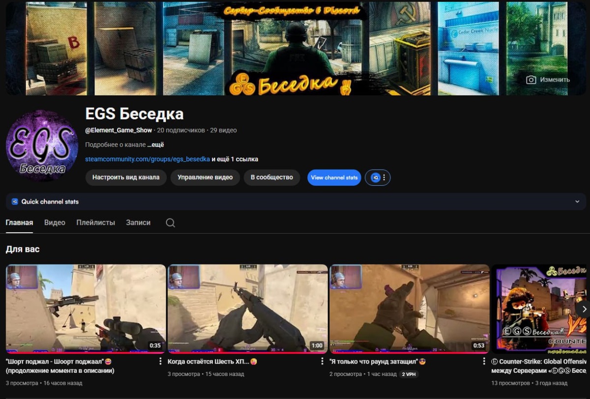 на Новом Канале «EGS Беседка». Раньше стримы по "CS 2" я проводил исключительно для платформы ВК Видео Лайв, а теперь Вы так же сможете смотреть их и на YouTUBE. Ссылка на Новый Канал «EGS Беседка» - https://www.youtube.com/@Element_Game_Show Переходите, подписывайтесь - Буду Рад Вас там Видеть!
