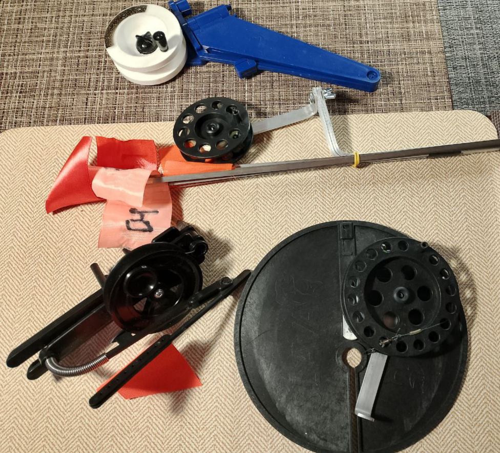 Если бы я сейчас покупал жерлицы на подставках, то выбрал бы модель с катушкой и флажком на более длинной стойке, но пока что и эти худо-бедно работают. А вот расширить свой арсенал я решил другим техническим решением, а именно треногами в разных вариантах исполнения.