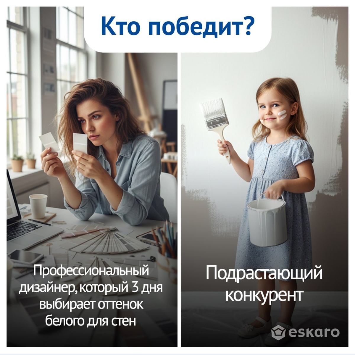 Для тех, кто три дня выбирает идеальный оттенок белого, и для тех, кто с детской серьёзностью берётся за первую кисточку. 😊 Eskaro — для всех победителей.