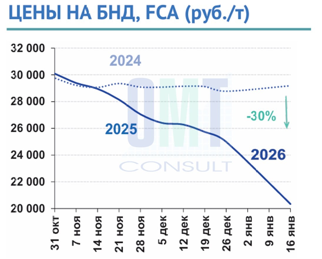 По экспертной оценке "ОМТ-Консалт" цены на дорожный битум в период с 12 января по 16 января 2026 г