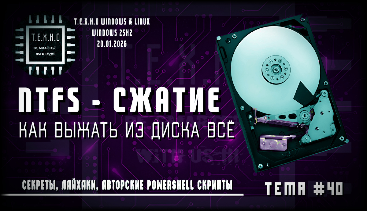 #NTFS #сжатие #Windows10 #Windows11 #WindowsServer #экономия_места #диск #SSD #HDD #оптимизация #CompactOS #LZX #XPRESS #компрессия #файловая_система #администрирование #гики #лайфхак #производительность #игры #Steam #архив #данные #восстановление #резервная_копия #командная_строка #PowerShell #CompactGUI #дедупликация #RAM #CPU #баланс #системное_администрирование #оптимизация_диска #технические_советы