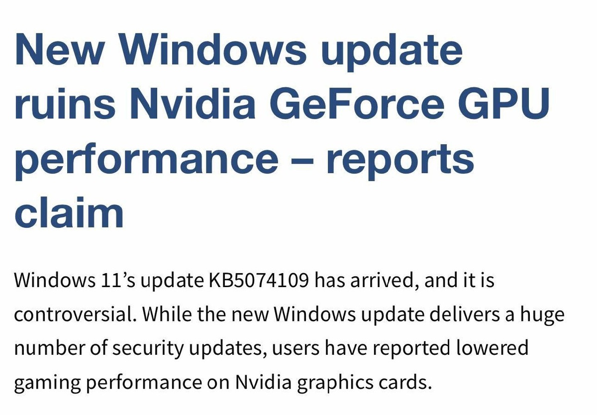 После обновления Windows 11 зафиксировано снижение FPS в играх на видеокартах NVIDIA. Пользователям рекомендуют воздержаться от установки обновления и дождаться исправлений от Microsoft. https://dzen.ru/id/5c0e38ff46ef5c00aaa80527