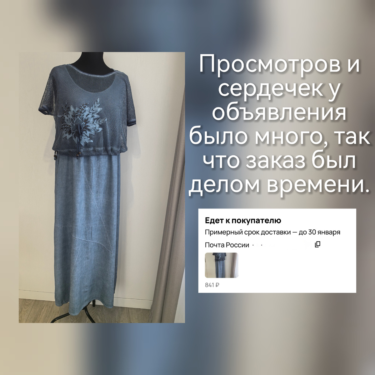 Вчера заезжала на почту. Отправила мамин летний сарафан. Это к вопросу о сезонности: если позволяют лимиты, выставлять нужно всё. Никогда не угадаешь — кому-то летом нужны лыжи, а кому-то зимой сарафаны. 😀