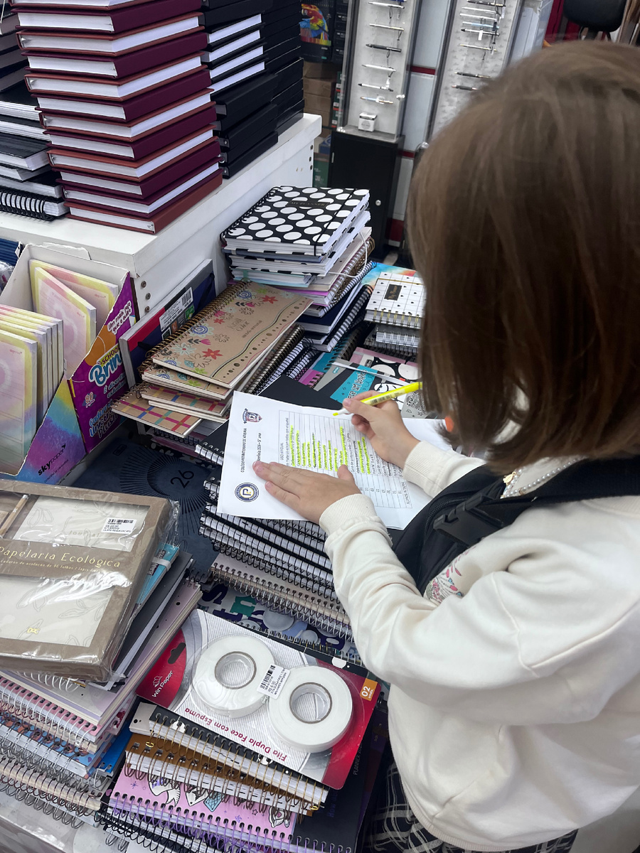 Продавцы брали наши списки и искали все сложные пункты, а мы с детьми тем временем заказали и распечатали наклейки с именами - магазин предоставляет эту услугу бесплатно всем, у кого покупка на 500 реалов и больше.