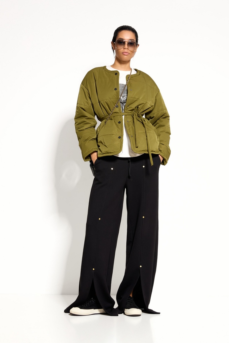 Куртка Lakbi 55338B — универсальная модель в актуальном оттенке хаки, которая сочетает в себе комфорт, функциональность и выразительный дизайн. Утеплитель изософт дарит тепло и комфорт в прохладную погоду, а мягкая, спущенная линия плеч создаёт непринуждённый, современный силуэт. Контрастные чёрные кнопки и пояс из той же ткани становятся стильными акцентами, подчёркивая индивидуальность и завершённость образа. Особенности модели: