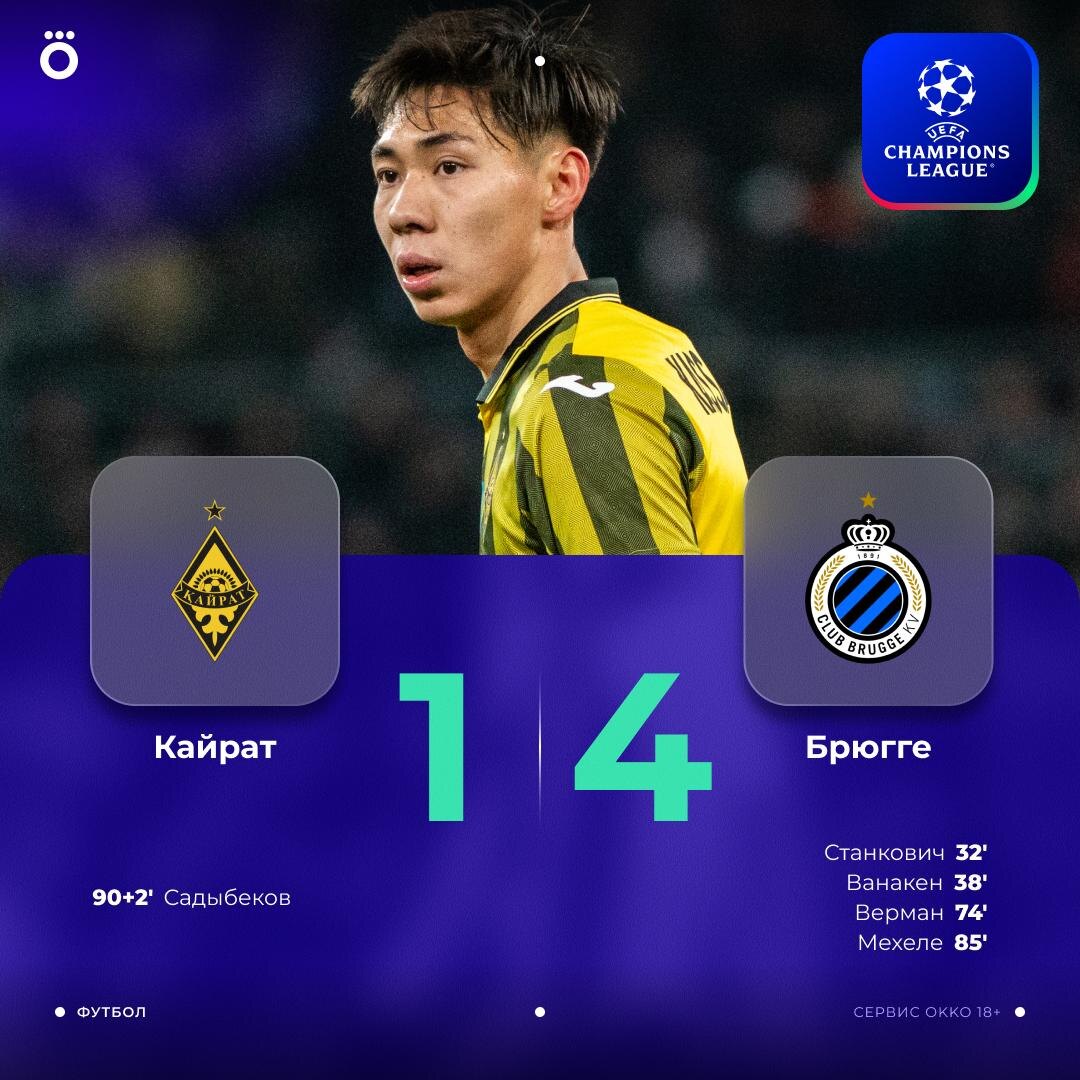 А «Кайрат» попробует добыть первую победу в общем этапе ЛЧ — впереди «Арсенал» в Лондоне. Андрей Сергеевич будет смотреть 👀