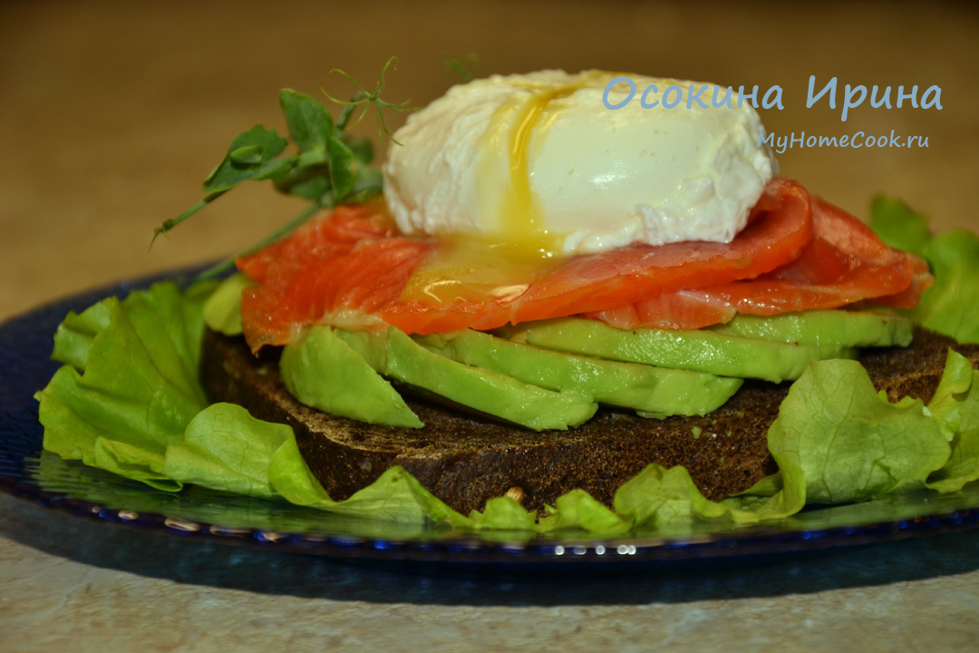 Тут самое важное, чтобы хлеб был именно "Бородинский" иначе вкус будет не так гармоничен. А в целом всё просто. Бородинский хлеб нарезала большими, но не толстыми ломтями, поверх каждого уложила по половине резаного авокадо, на него - 3 ломтика слабосоленой форели, венчала яйцами пашот, украсила микрозеленью и сразу подала. Чтобы сварить яйцо пашот в ковшик со слабокипящей водой добавляю соль, немного яблочного уксуса, ложкой размешиваю воронку, аккуратно вбиваю яйцо и варю почти без кипения 3 минуты, а потом перекладываю на бумажные полотенца промокнуть лишнюю влагу. Вкусное и питательное блюдо хорошо и для завтрака, и для перекуса) Приятного аппетита