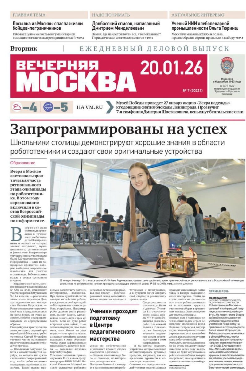 Β» π° π ΠΠ°Π·Π΅ΡΠ° Β«ΠΠ΅ΡΠ΅ΡΠ½ΡΡ ΠΠΎΡΠΊΠ²Π°Β» Π² ΡΠ²ΠΎΠ΅ΠΌ Π½ΠΎΠΌΠ΅ΡΠ΅ ΠΎΡ 20 ΡΠ½Π²Π°ΡΡ Π½Π°ΠΏΠΈΡΠ°Π»Π° ΠΎΠ± ΡΡΠΏΠ΅Ρ