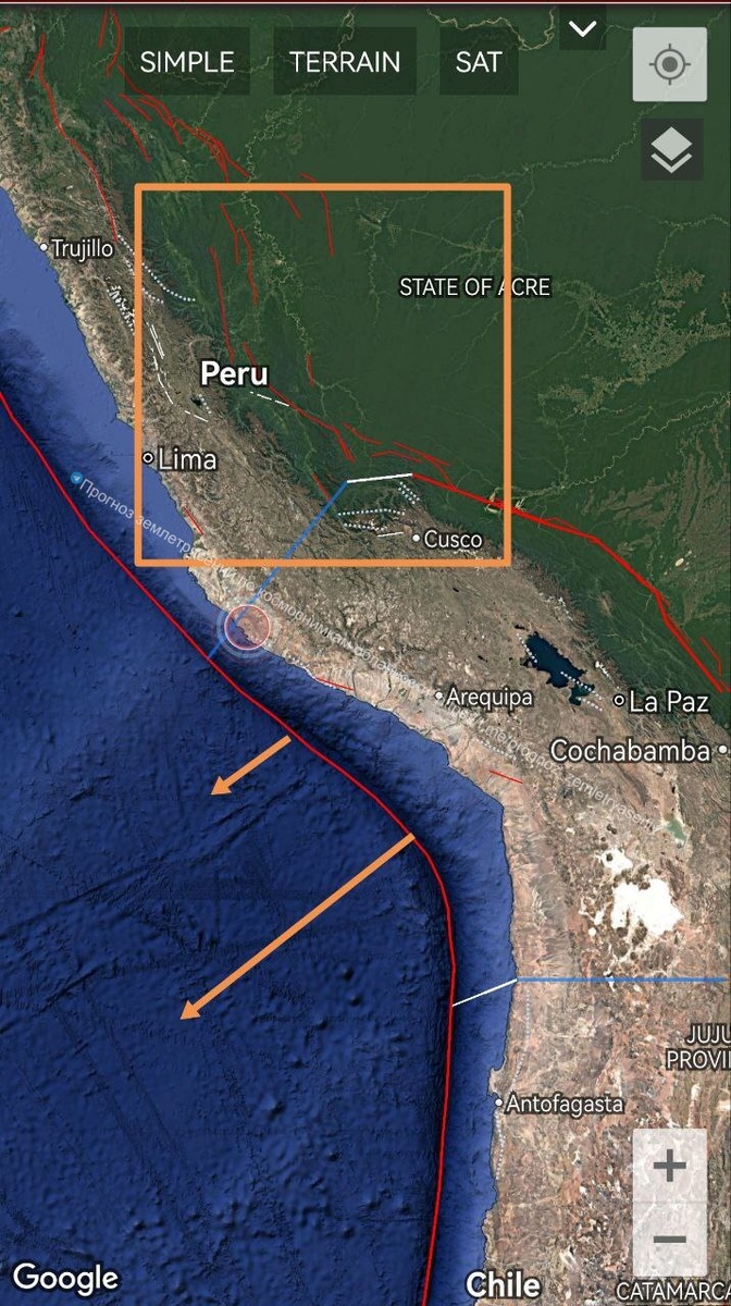 Вероятность землетрясения М6+ имеется в районе Перу до 29 января
