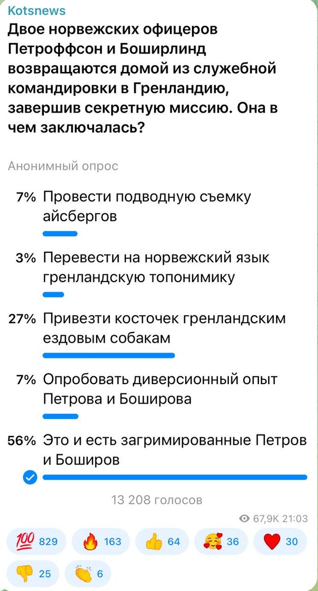 ⚡️⚡️⚡️ 56 процентов подписчиков считают, что норвежцы - это и есть загримированные Петров и Боширов. Что тут сказать - мастера перевоплощения!