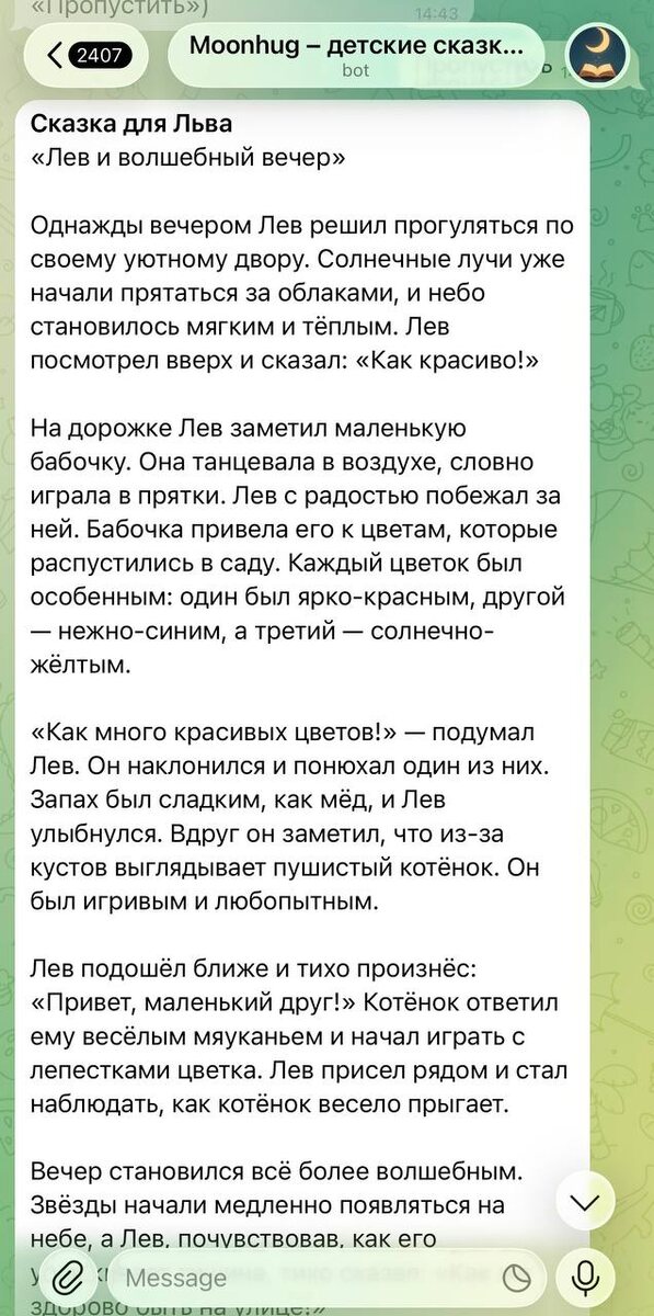 Вечером ребёнок часто «не вредничает» — он просто перегружен. За день слишком много впечатлений, эмоций, шума. А перед сном мозгу нужно время, чтобы переключиться на спокойствие. Сказка — один из самых мягких и рабочих способов. Но есть нюанс: иногда даже сказка не спасает, если сделать её «как попало». Делюсь тем, что лучше всего работает у родителей (и у нас тоже). Сказка создаёт предсказуемый ритуал: ребёнок знает, что будет дальше → тревожность снижается → телу легче расслабиться. А если в истории звучит его имя, мозг воспринимает это как «своё» — внимание фиксируется, а внутренний шум успокаивается. Не обязательно идеально. Главное — одинаково: вода → пижама → свет → сказка → одна фраза на ночь. За 30–40 минут до сна лучше выключить активные мультики/игры. Если ребёнок очень бодрый — помогает тихая рутина: пазл, рисование, книжка-картинка. Холодный яркий свет бодрит. Тёплый и приглушённый — даёт телу сигнал: “пора отдыхать”. Оптимально 3–7 минут. Длинная история — это уже “второй