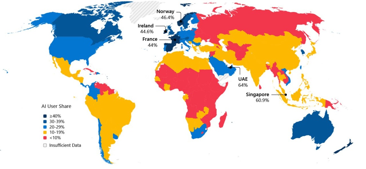 Microsoft поместил Россию на 119-ю строчку по темпам внедрения ИИ