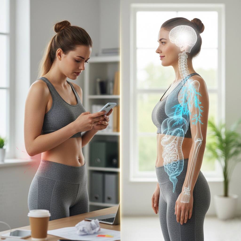 Когда голова уезжает вперед (привет, смартфоны), мышцы шеи перенапрягаются и сдавливают блуждающий нерв. Это главный «провод» вашего спокойствия. Итог? Организм думает, что вы в опасности. Повышается кортизол, человек становится тревожным, плохо спит и не может расслабиться, даже когда всё хорошо.