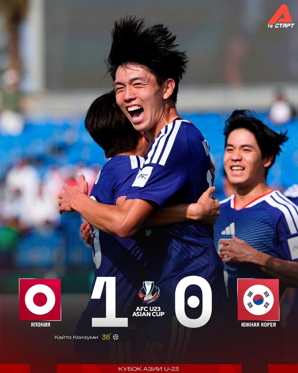 ! «Самураям» в матче с Южной Кореей хватило всего одного забитого гола. До перерыва отличился Кайто Коизуми. Соперника Японии мы узнаем вечером, им станет победитель матча Вьетнам – Китай ⚔ Подписывайся на ТВ СТАРТ в MAX📲