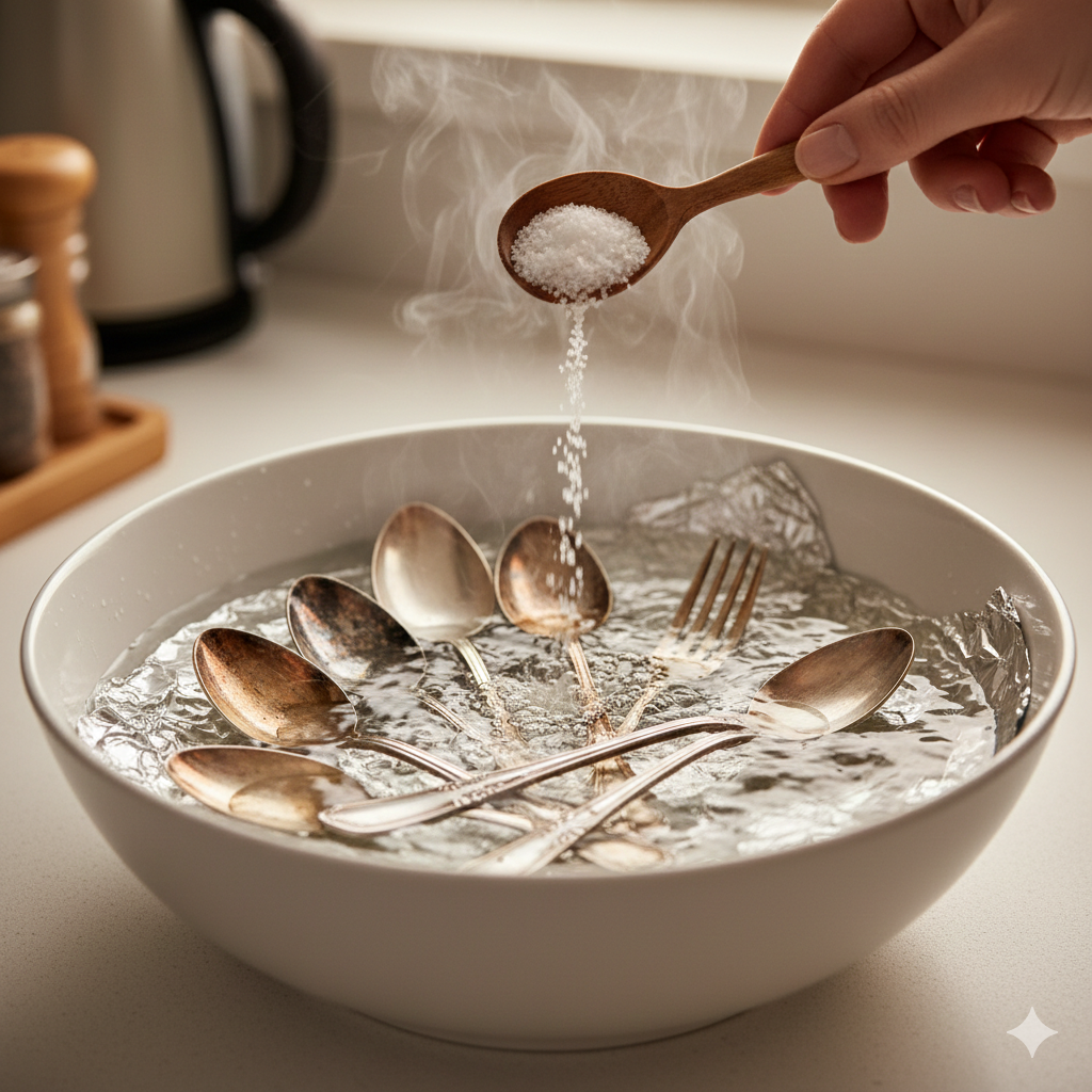 Что нужно сделать: Почему это работает: Происходит электрохимическая реакция. В соленой горячей воде сера, из-за которой серебро чернеет, «перепрыгивает» с серебра на алюминий, так как алюминий обладает более высокой химической активностью. Фольга потемнеет, а серебро вернет свой первозданный блеск без всякого трения и царапин. Лайфхак: Если изделия очень черные, добавьте к соли одну столовую ложку пищевой соды. Реакция пойдет еще быстрее, а результат будет еще ярче.
