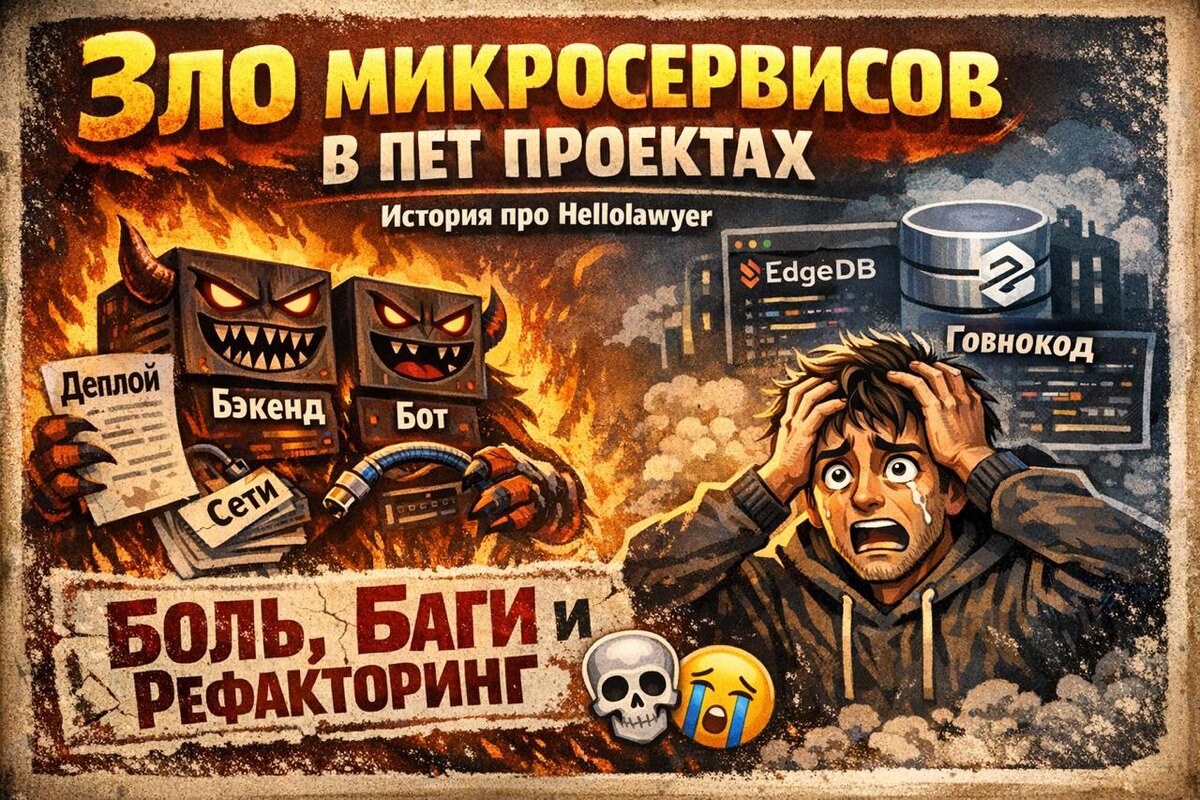 Продолжение истории про hellolawyer — юридический джобборд. В этом посте расскажу, какие были технические решения (плохие) Первая идея была сделать телеграм бота, который бы постил вакансии персонально с учетом выбранных интересов и фильтров: локация, позиция, формат, отрасли права. Было решено делать два репозитория: один под бота, другой под бэкенд логику. Boy oh boy, it was a mistake. 1. Проблемный деплой — нужно было реализовывать деплой для двух репозиториев. 2. Сетевые вызовы и контракты — нужно было настраивать сетевую связанность двух контейнеров. Да, просто docker network, но это надо было делать. 3. Повторяющиеся модели данных. Отдельно выделю попытку заюзать новый прикольную тулзу для работы с базой — edgedb (сейчас это www.geldata.com под эквизишном vercel) — тогда еще она была и в бете. По итогу переписали на asyncpg 😎 4. Рефакторинги. Как же я был недоволен кодом, который написал. Но он работал и выполнял свою роль: появлялись пользователи. Но инженер не умирал и х