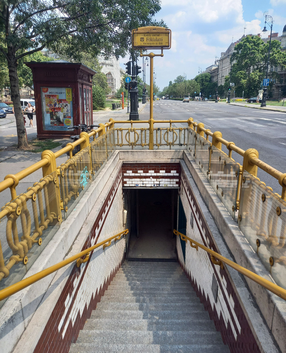 Впрочем, учитывая, что линия проходит под проспектом Андраши, «будапештскими Елисейскими Полями», выйти можно абсолютно на любой станции, и вокруг непременно будет очень красиво. Сам проспект также прокладывался венграми в рамках празднования тысячелетия своей новой родины, а к строительству зданий на нем были привлечены наиболее именитые архитекторы того времени. В итоге проспект Андраши стал одной из самых помпезных улиц Европы, а кроме того, он был в своем роде еще и «двухуровневым»: сверху ездили кареты и первые автомобили, а под землей неслись первые составы метро на европейском континенте.
