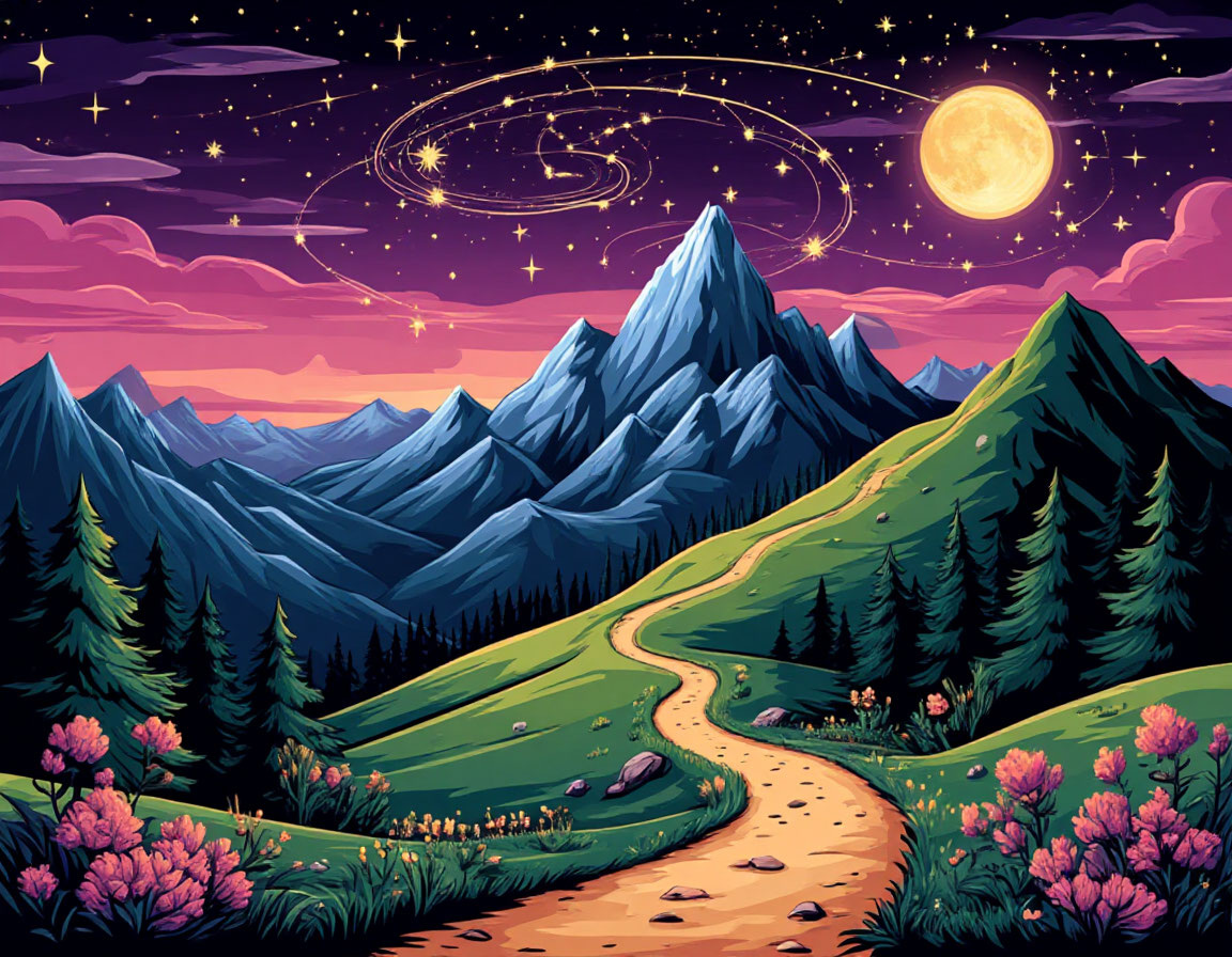Символ периода: горная тропа — путь вверх, требующий осторожности и расчёта шагов.