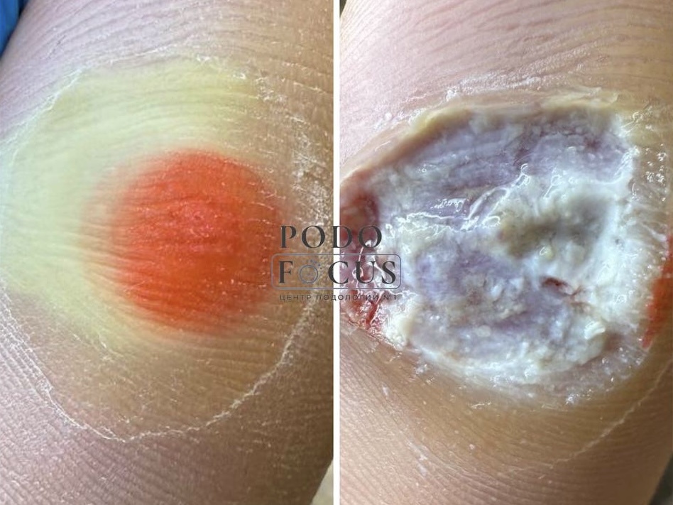Мы против пластырей от мозолей! ❌ К нам в Центр приходят клиенты с жуткими последствиями применения «чудо-средства» — пластырей от сухих мозолей, натоптышей и бородавок. Пора разобраться, почему эти средства могут причинять больше вреда, чем пользы. Эти отзывы подчеркивают, что не всё, что обещает производитель, оказывается безопасным и эффективным. Давайте разберёмся, почему это происходит. Основное действующее вещество пластыря — салициловая кислота в концентрации 32%. Это мощный кератолитик, который, по задумке производителя, должен размягчать мозоли. Но на практике всё оказывается иначе. Салициловая кислота действительно воздействует на ороговевший слой, но также затрагивает здоровые ткани и более глубокие структуры дермы. Это может привести к воспалению и сильным ожогам в области применения пластыря. Важно отметить, что это не сам пластырь плохой, а недостаток информированности. Многие не читают инструкцию и не догадываются, что применение пластыря противопоказано в следующих случ